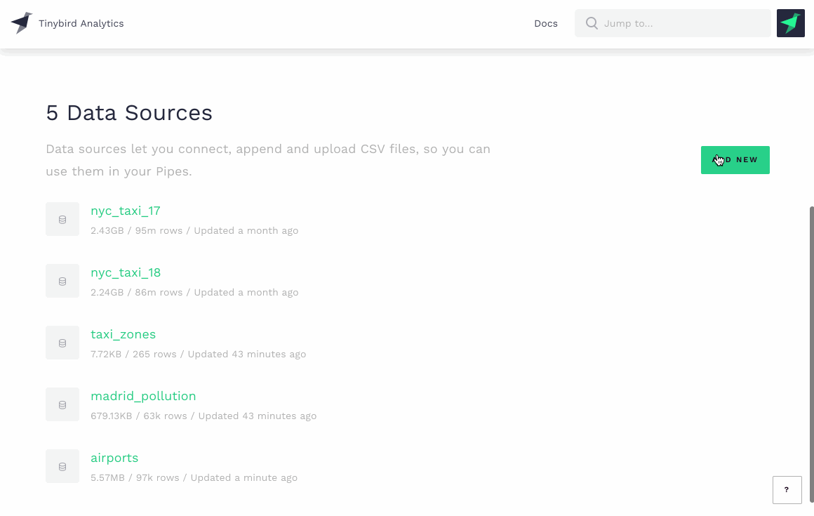 If youâre new to Tinybird, you can sign up for free here. And if you have any questions or feedback about this release or any Tinybird features, please join our Slack community! Itâs the best place to ask questions and get answers about how to use Tinybird, whatâs new, and when we launch new things!