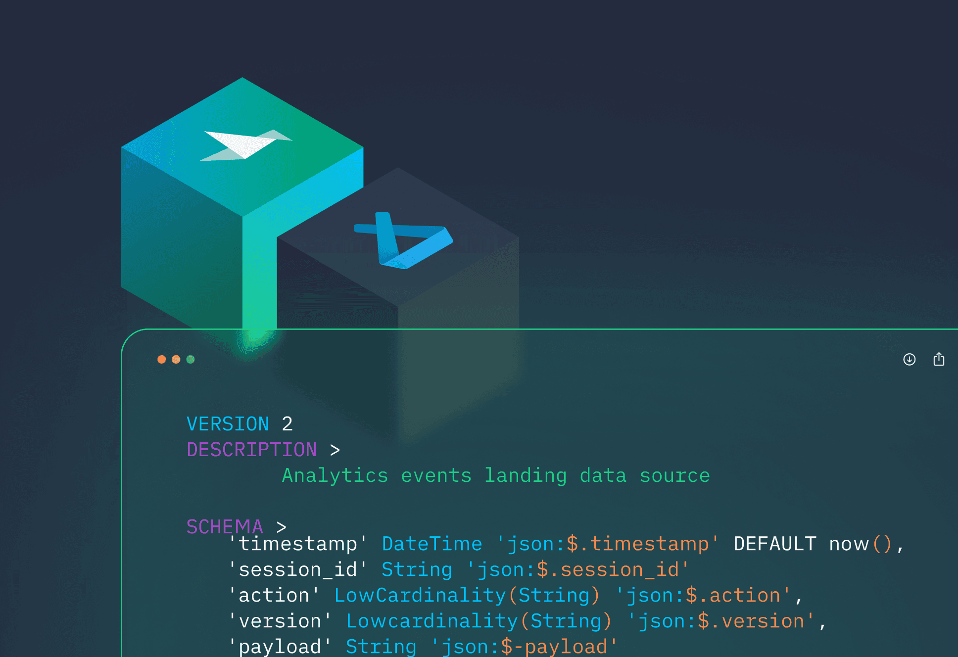 After that, we decompress with gzip -d. Then, using jq, we select the fields we want to analyze from the JSON events and transform to CSV. We batch the data using GNU's parallel using two workers, -N500000 means we are sending 0.5 million rows batches. Finally we pipe those batches to curl using multipart upload to push to Tinybird. Notice we use the append mode and the Data Source with name github_actions. You don't need to set an schema, Tinybird guesses everything for you.
