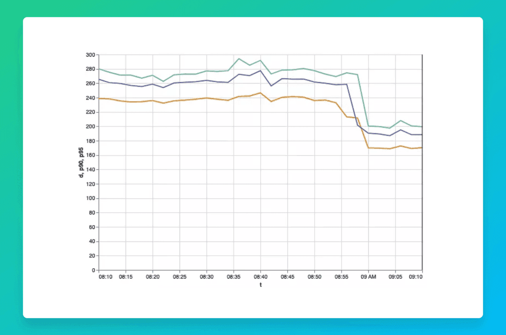 But storage is a different story. I was using MySQL to store all those checks. And what I would do is filter and download all those checks and perform the aggregations on the client side. At a certain point, MySQL just can’t scale for that use case. It would be kind of ironic to build an API latency monitoring service and have slow APIs 🤣.