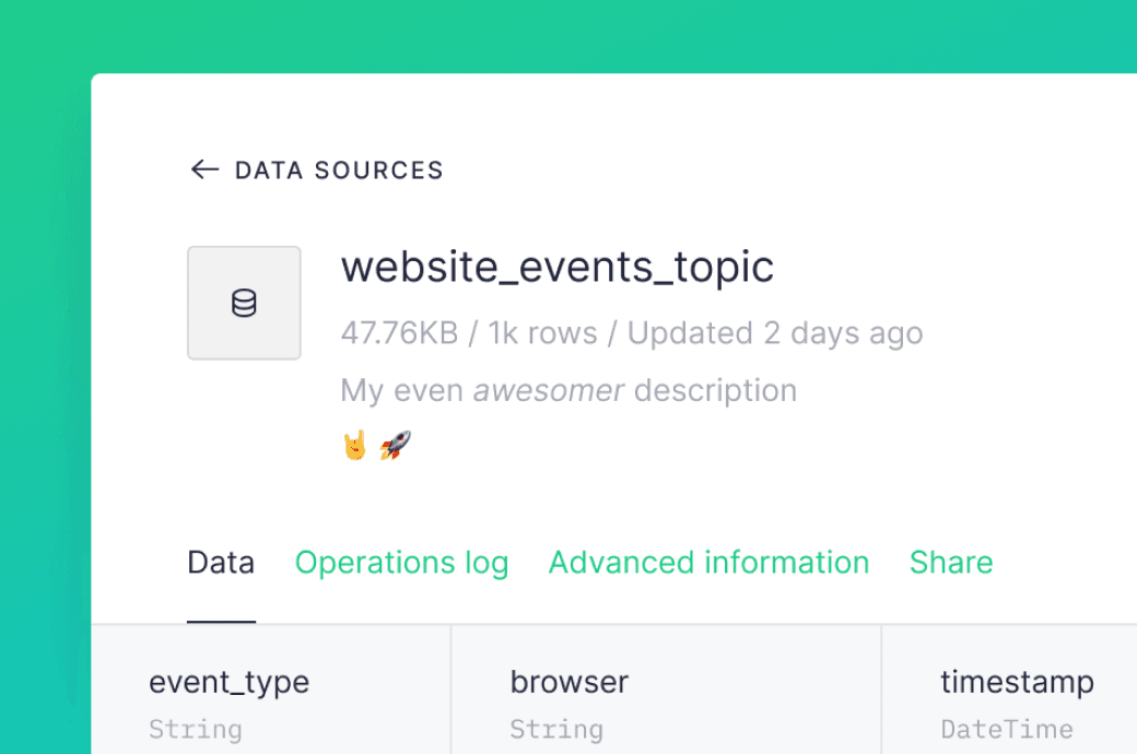 While building our own projects, we realized we needed a tool to explore our data, understand its shape, and figure out the right way to query it to get the answers we sought. After a lot of wasted time in the database console, we decided to design what is now called Explorations, a new feature in Tinybird.