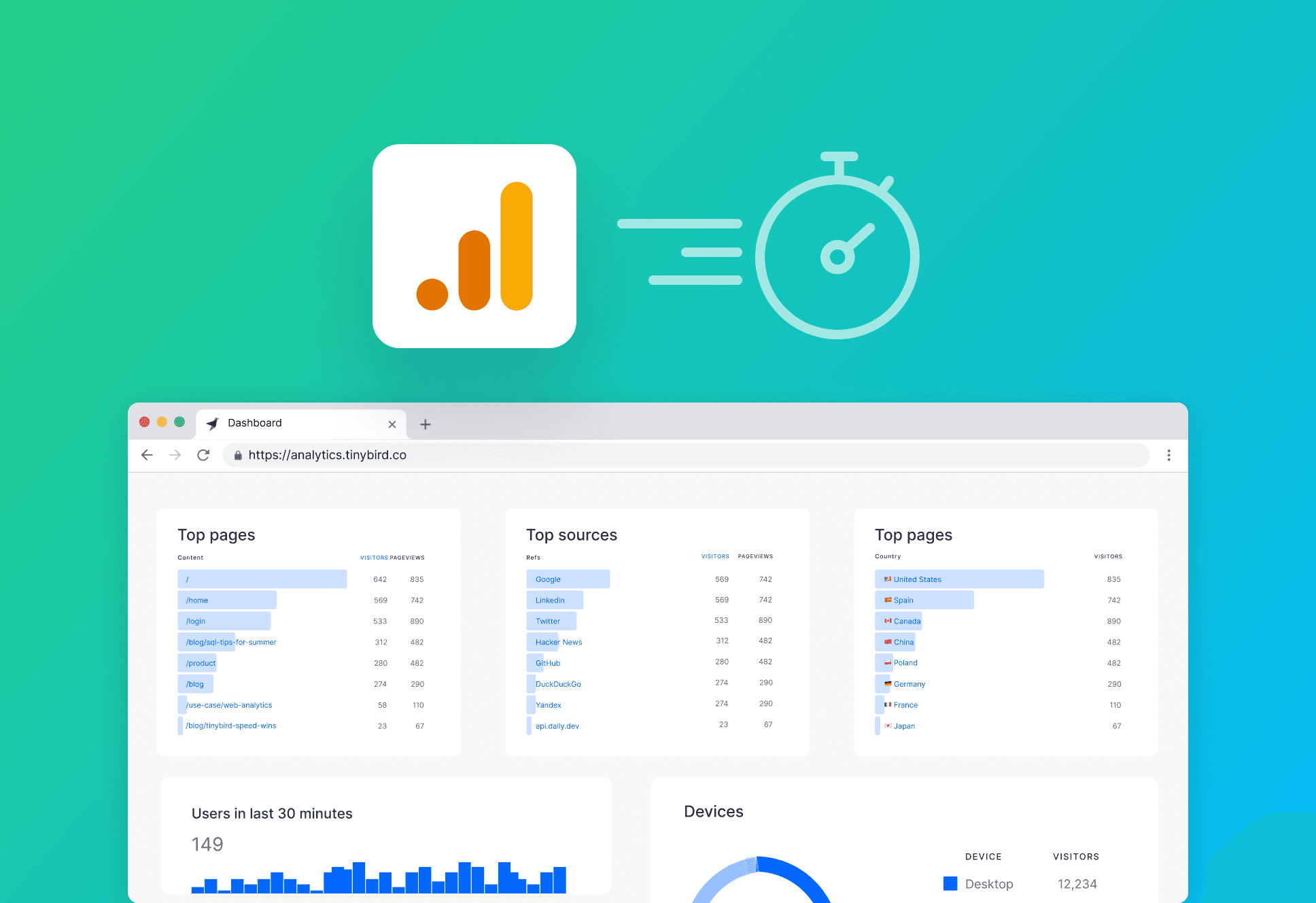 If you’re convinced that you want to build your own Google Analytics alternative, and you’re willing to take the steps to ensure privacy, transparency, and legal compliance, then you might check out Tinybird. Tinybird offers a DIY analytics platform for analysts and developers that lets you build privacy-first, low latency analytics on any volume of traffic. Tinybird solves the sampling, latency, and freshness issues that Google Analytics presents, and does it in a way that lets you have complete control over what data is collected, stored, and processed.