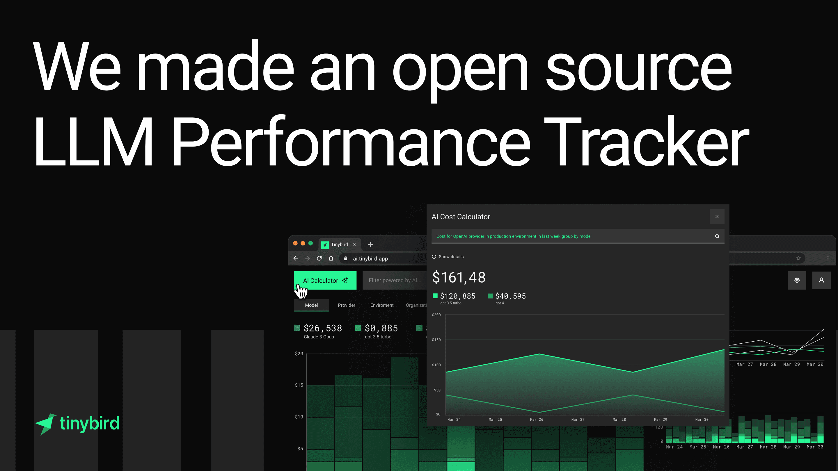 Tinybird is an analytics backend for software applications, and as LLM usage and AI features become more commonplace, developers are increasingly using Tinybird to track LLM usage, costs, and performance, both internally and in user-facing features.